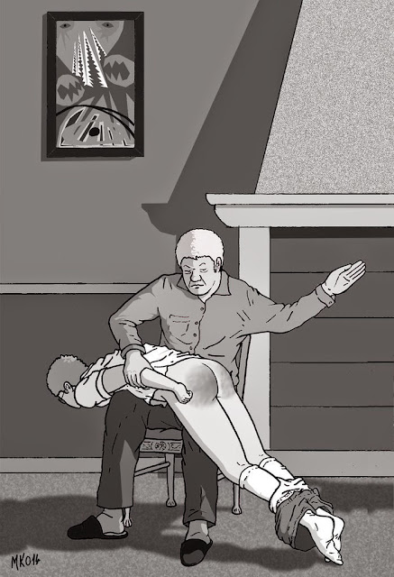 This was looking bad. “I couldn’t possibly say, since it would be Sneaking, Sir,” he said wildly. “I politely point out what would accrue to you from Loo Rolls’ claims,” he replied, “which is three strokes for Spying and six for Straying….multiplied by three skirts, making a total of twendy three….” OMG….twenty seven in old money, “….onto an already aching arse, all without any sexual imperative to ease the pain….” suddenly, he had some sympathy for sodding Shagger, who’d been put into a similar situation. Apparently the Interrogator had promised him an open-ended caning, until he confessed the crime, “….I haven’t actually awarded you these whacks, so I’ll offer you a quid pro quo….” his second today, “….divulge the details of the deviant damsel, and we’ll say no more about Spying or Straying….subject to the agreement of this innocent young Lady.” She nodded, and there was a surly silence. “I’m waiting, Shanks….” he said sternly, and the, ‘….I can wait all night, if necessary,’ didn’t need stating. It simply hung unuttered in the air.